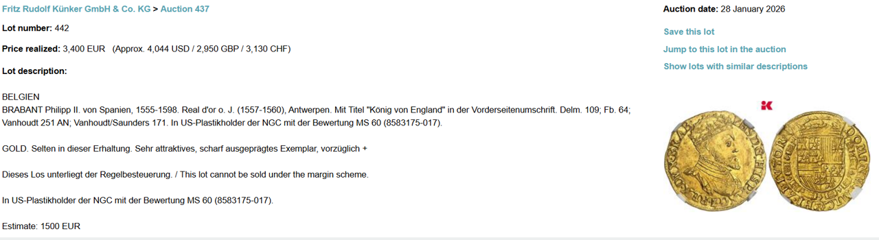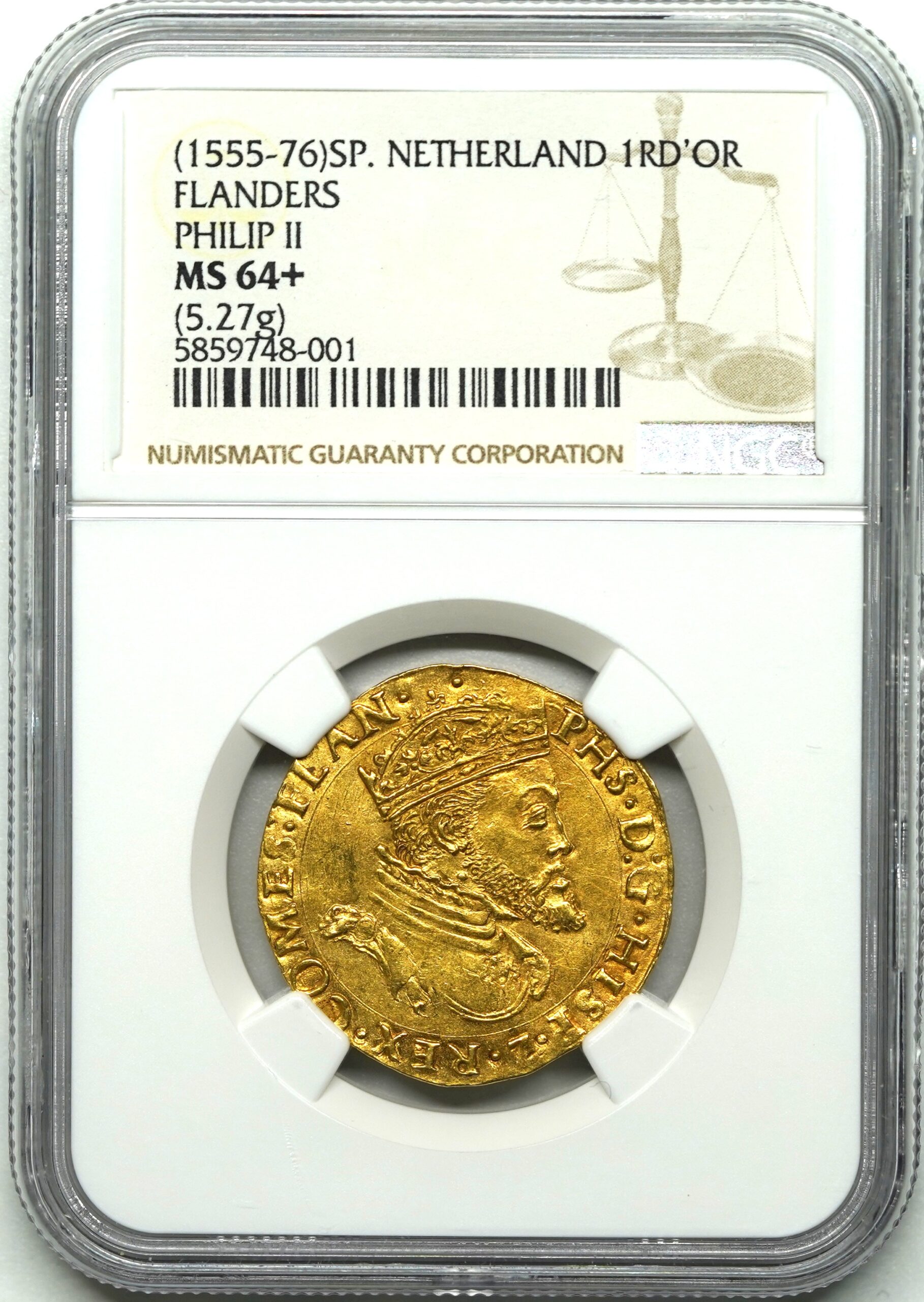 【最高鑑定】1555-76年 フェリペ2世 レアルドール金貨ドール金貨 MS64+ NGC