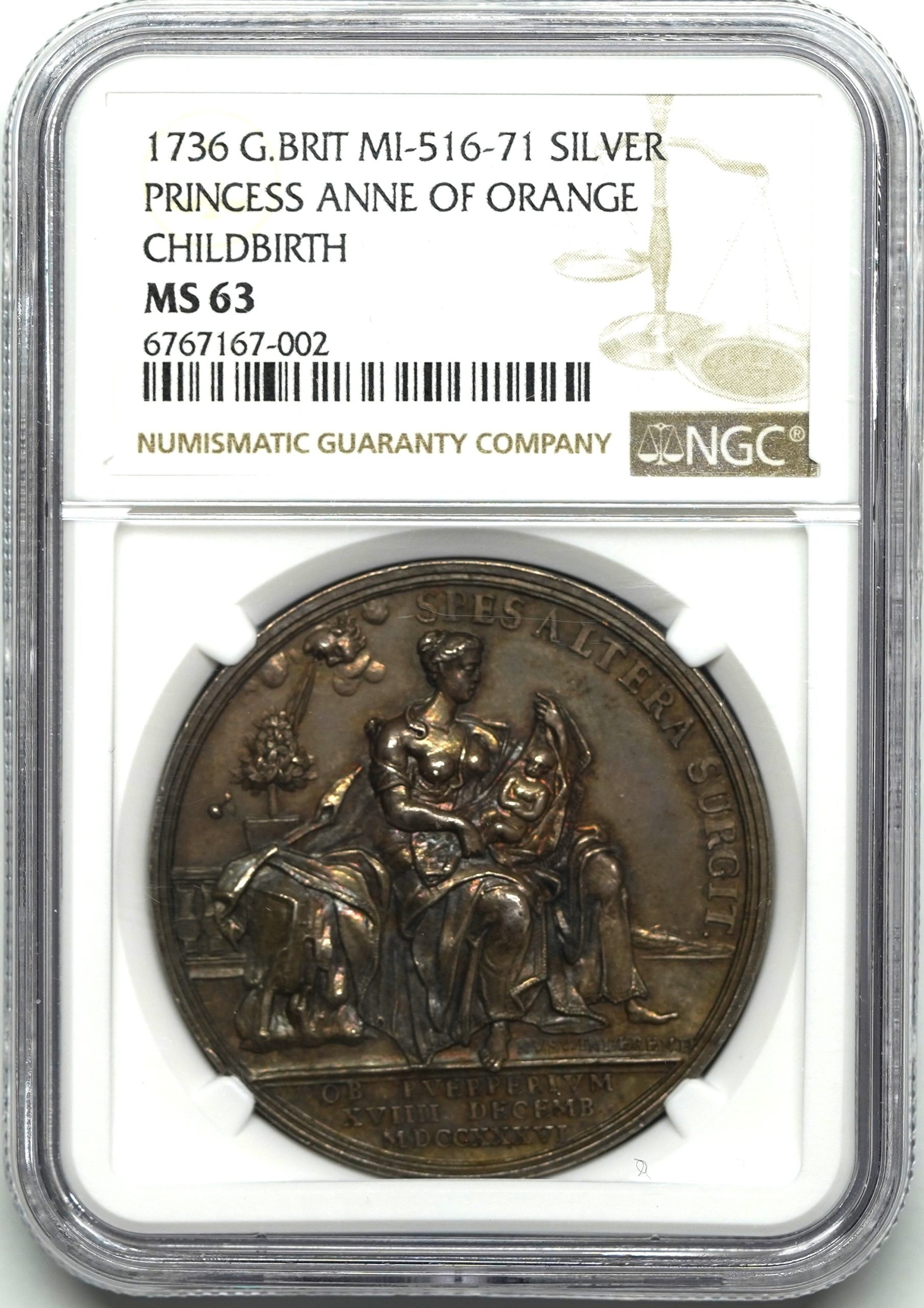 【Sold】1736年 アン(オレンジ公妃)第一子誕生記念 銀メダル MS63