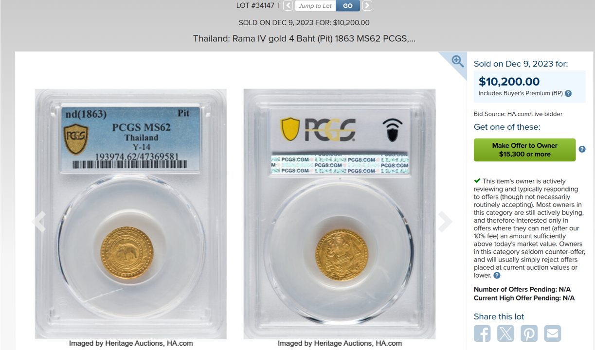 そして、4バーツ最高鑑定は、オークションには、もう出てきておりません。