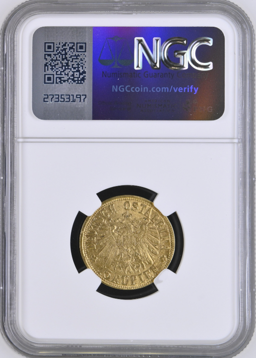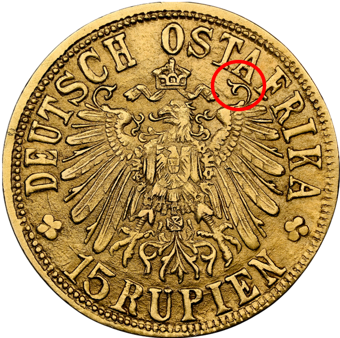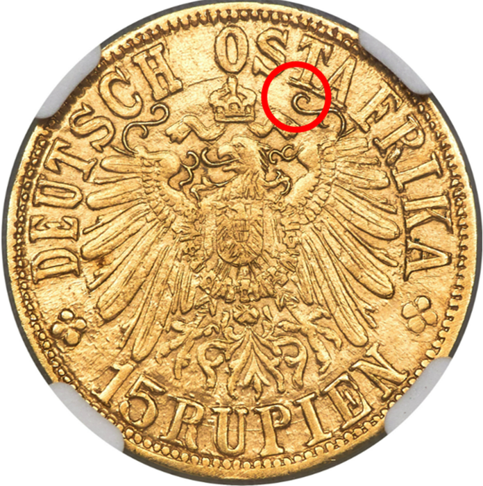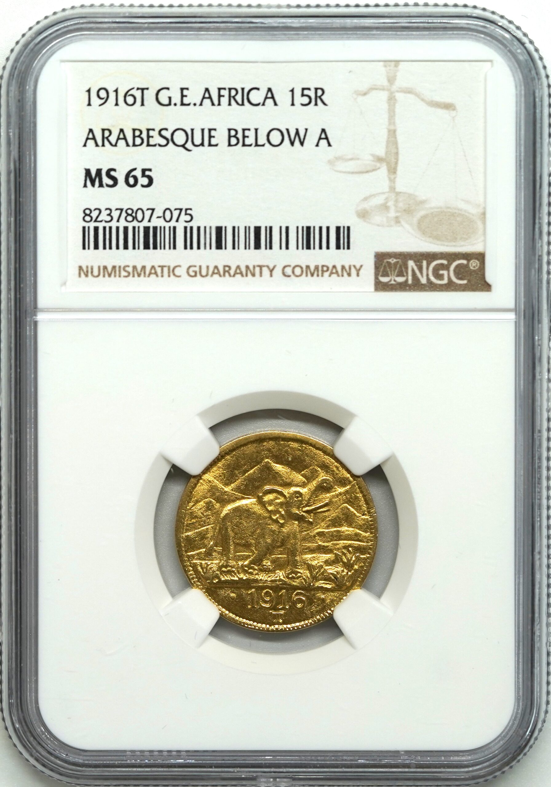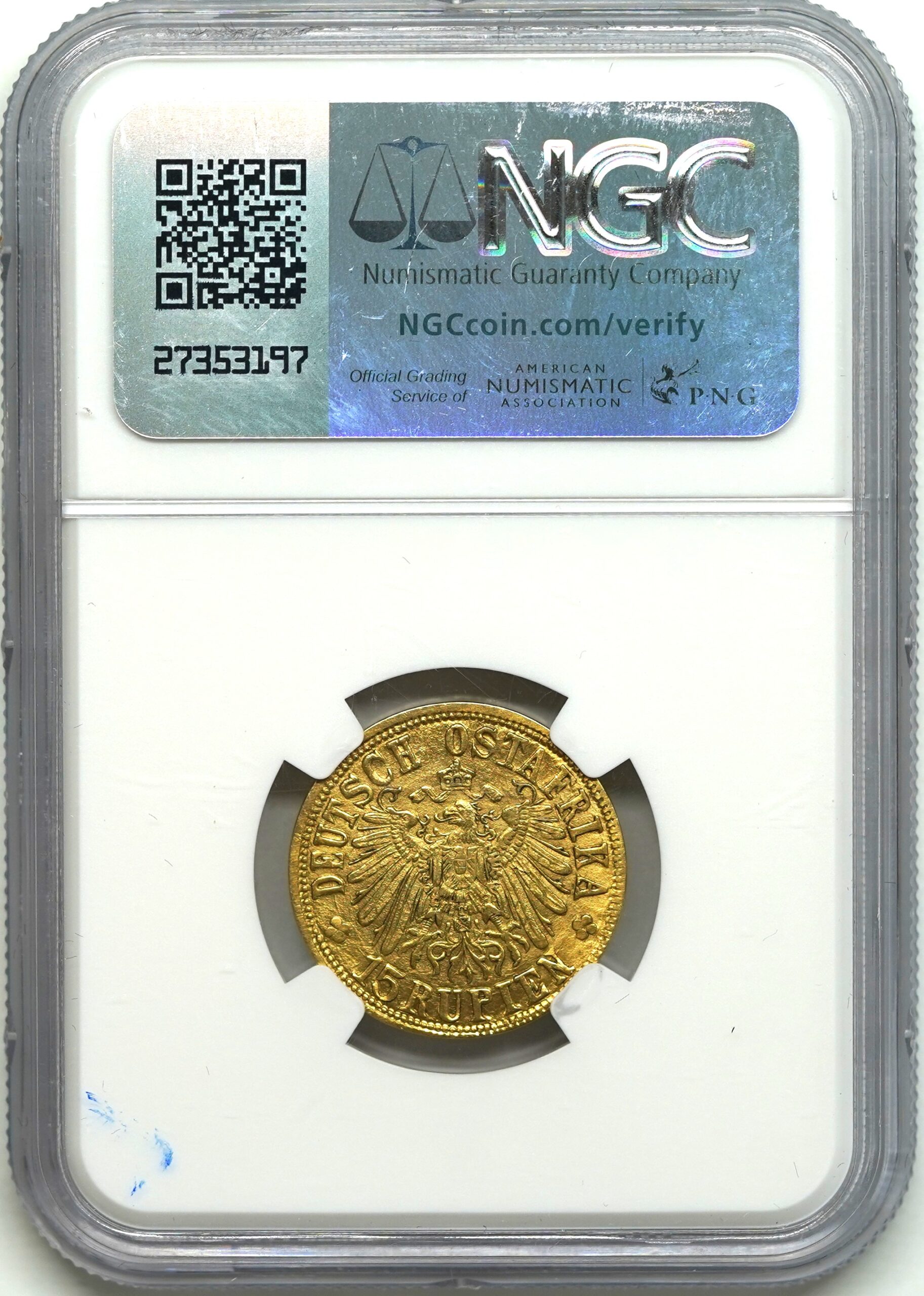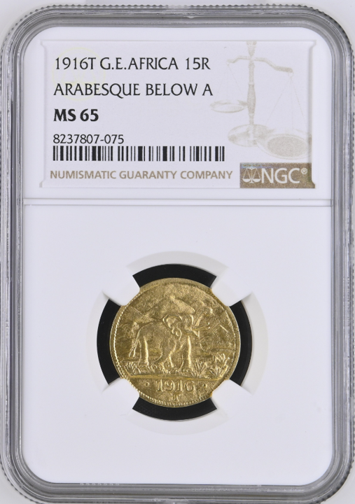 【Sold】予算500万円の人は、これだ!!【Below A!!】1916年 ドイツ領東アフリカ ヴィルヘルム2世 15ルピエン金貨 MS65 NGC