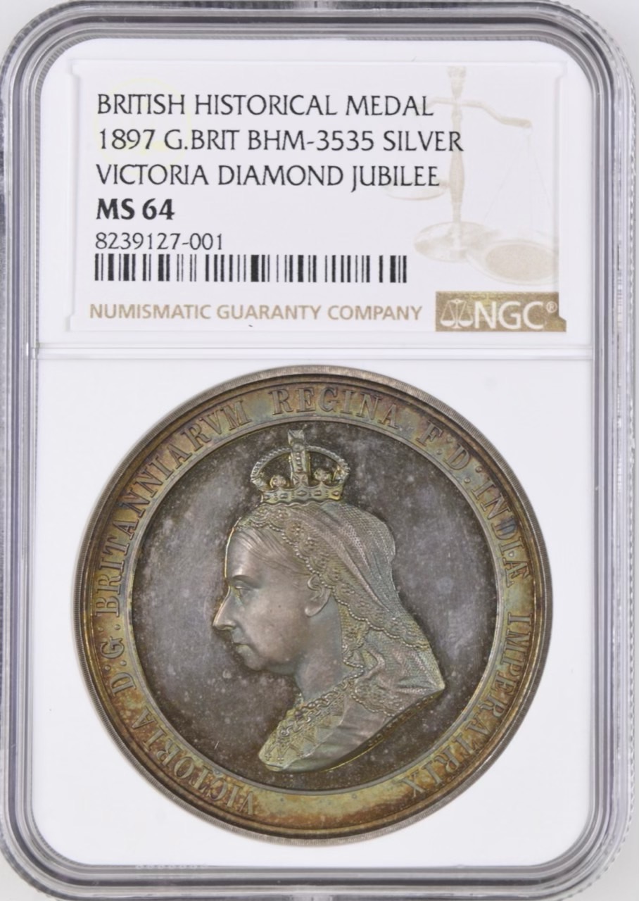 【価格改定】【トーン!!】1897年 ヴィクトリア 即位60年記念 銀メダル MS64 NGC