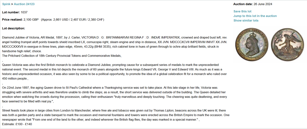 ヴィクトリア女王 即位60年を記念して発行された銀メダルとなります。
