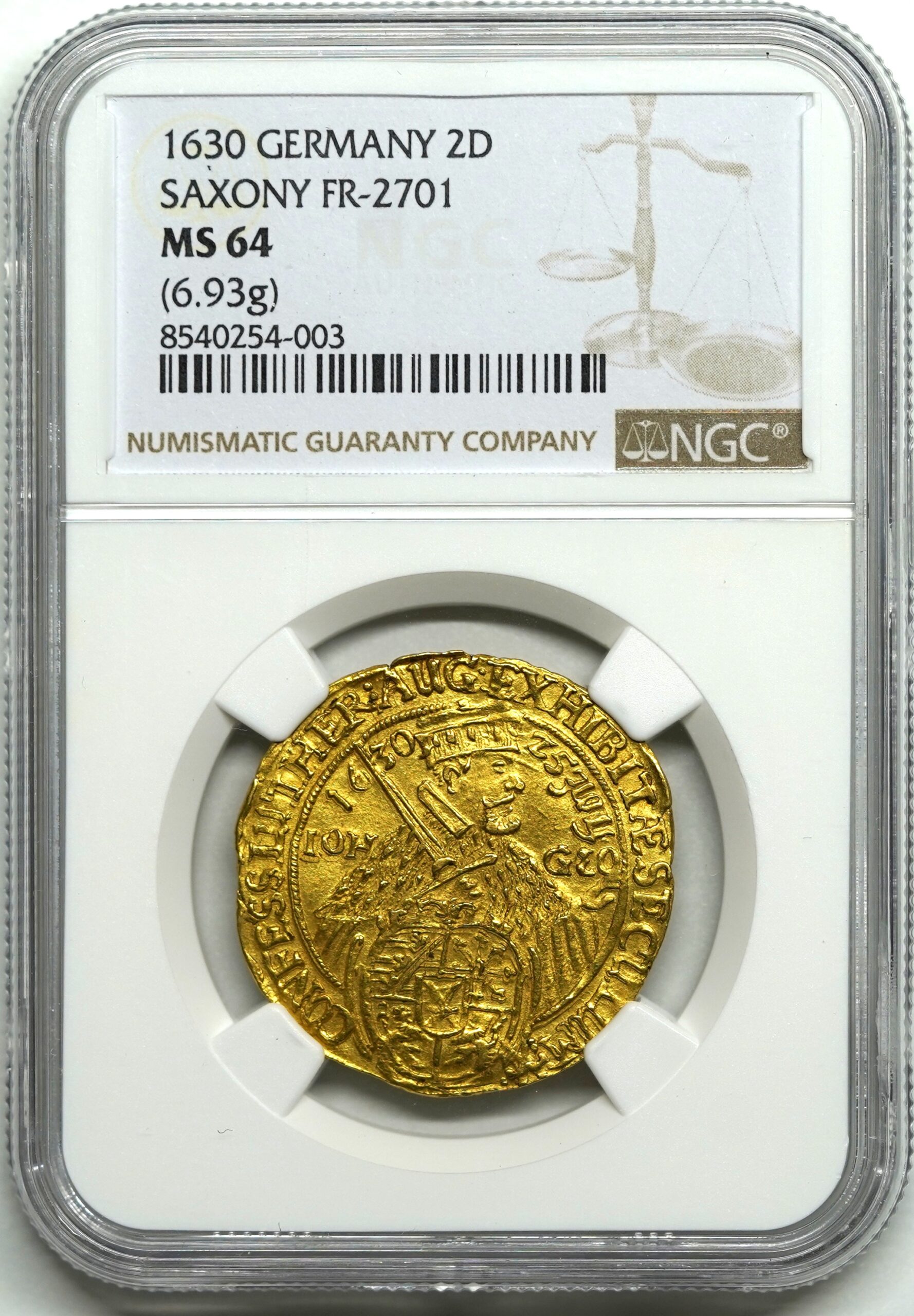 【Sold】【神聖ローマ帝国】1630年 ザクセン ヨハン・ゲオルグ1世 2ダカット金貨 MS64 NGC
