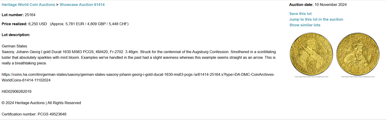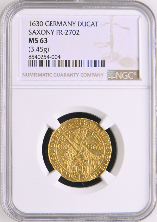 【即決の1枚】1630年 ザクセン ヨハン・ゲオルグ1世 ダカット金貨 MS64 NGC