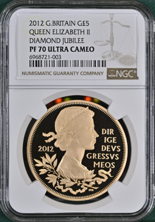 【Sold】【委託販売】2012年 エリザベス2世 即位60年記念 5ポンド金貨 PF70UCAM NGC