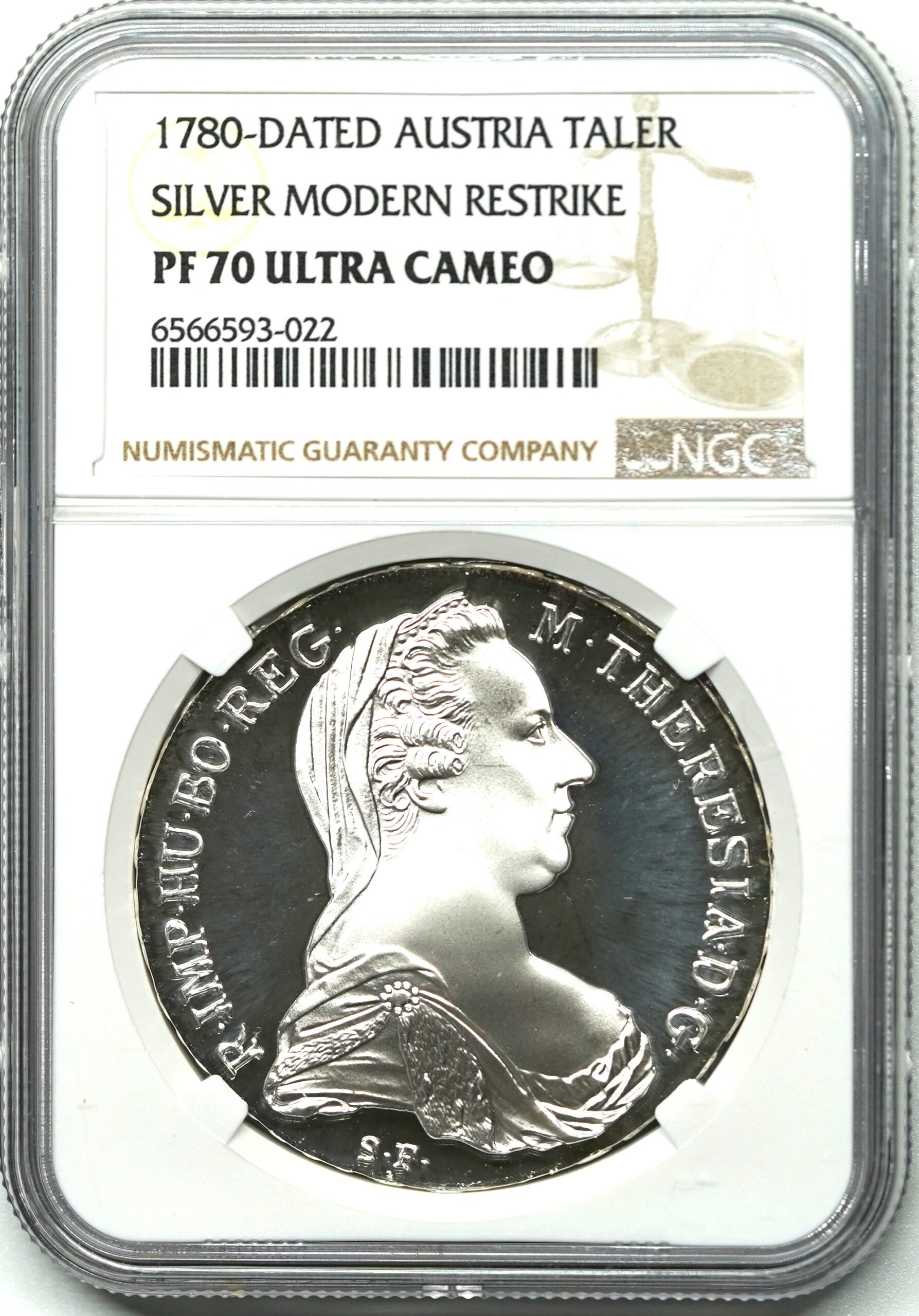 【Sold】1780年 マリア・テレジア ターラー モダン リストライク PF70UCAM NGC