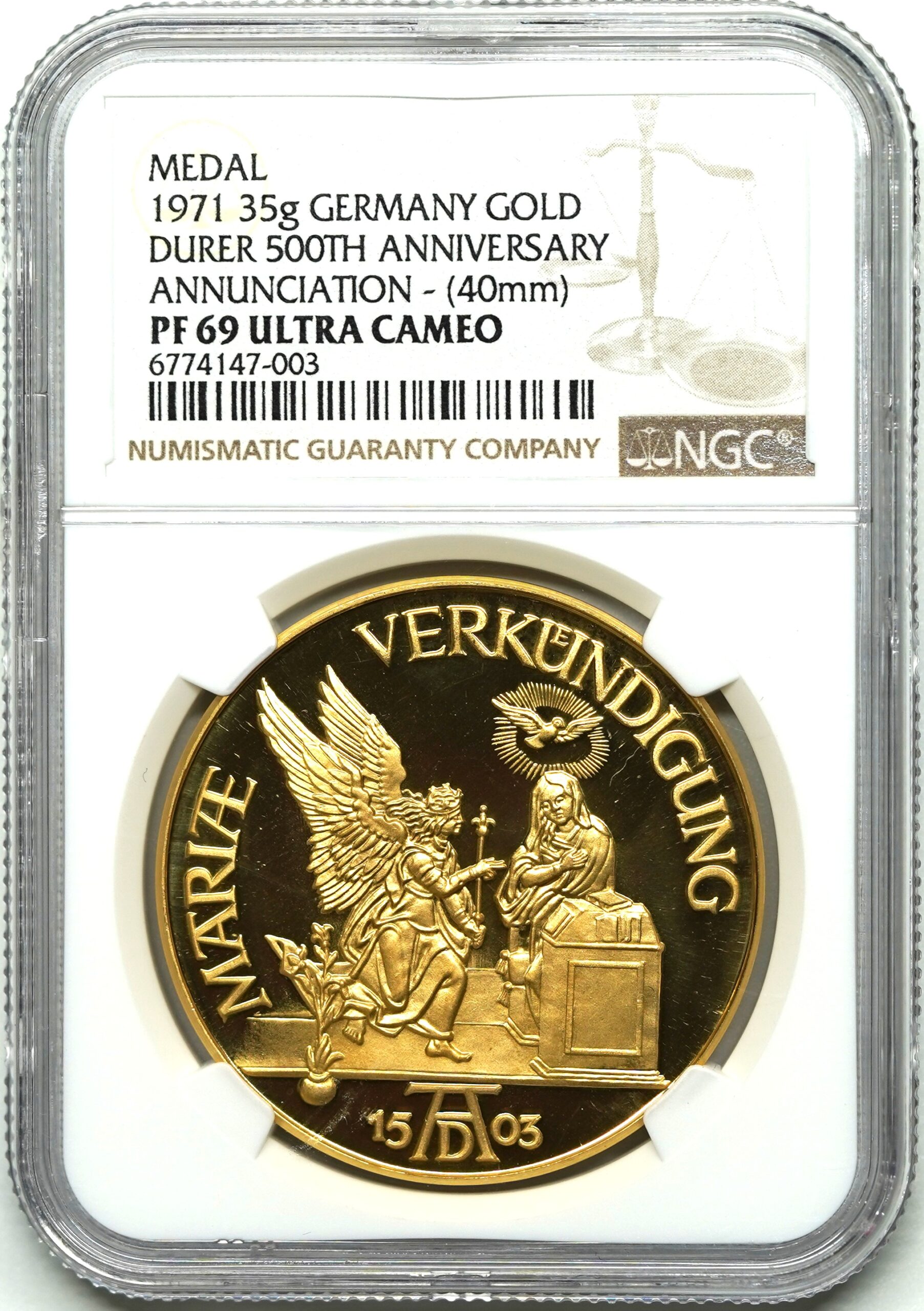 【Sold】1971年 受胎告知 ニュルンベルク都市景観 10ダカット金メダル PF69UCAM NGC