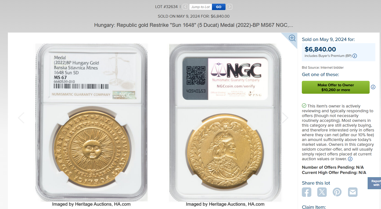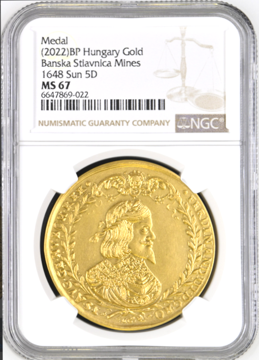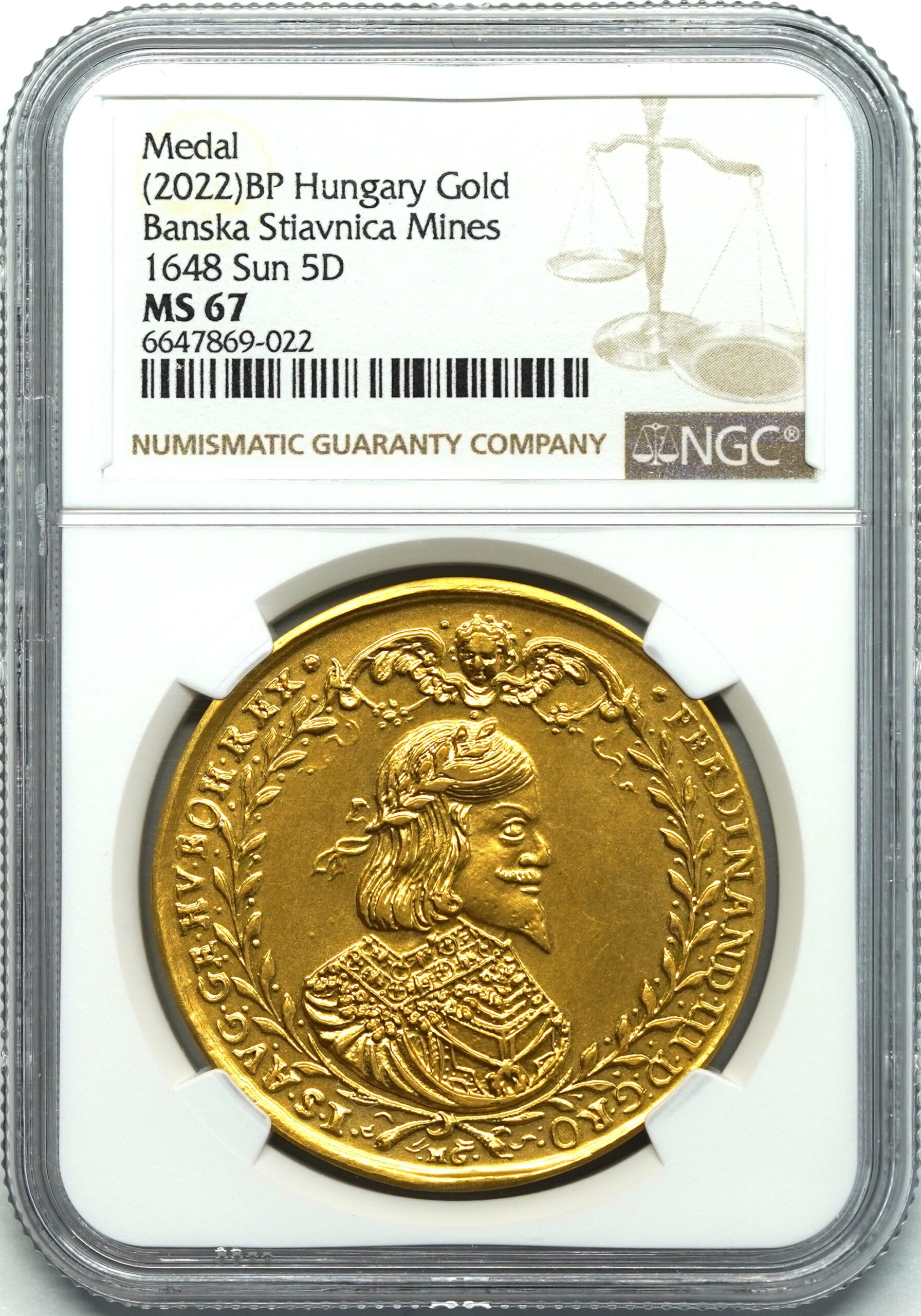 【Sold】1648年(2022年) ハンガリー フェルディナンド3世 Sun 5ダカット リストライク MS67 NGC