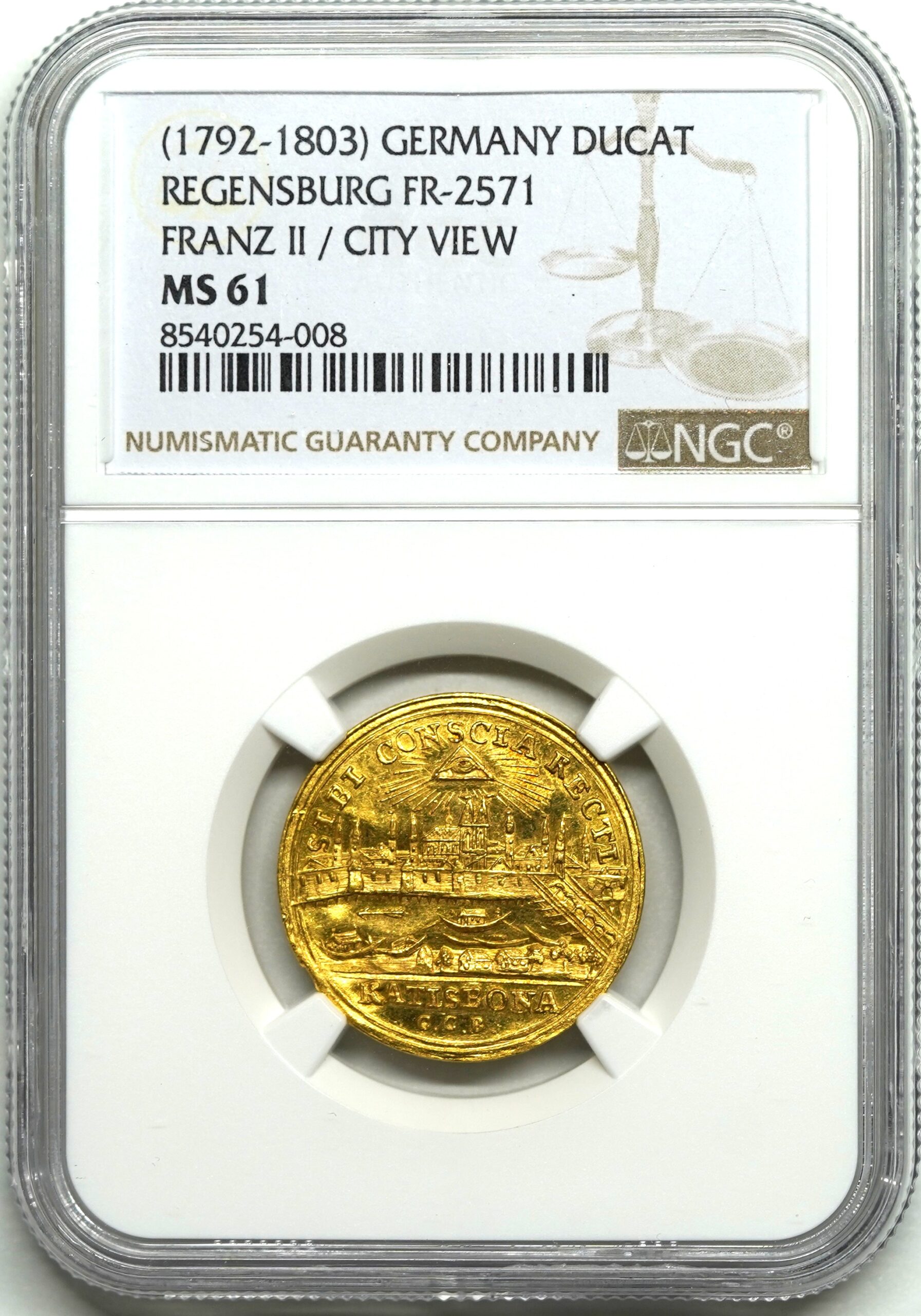 【Sold】【今が買い】1792-1803年 レーゲンスブルク 都市景観 ダカット金貨 MS61 NGC