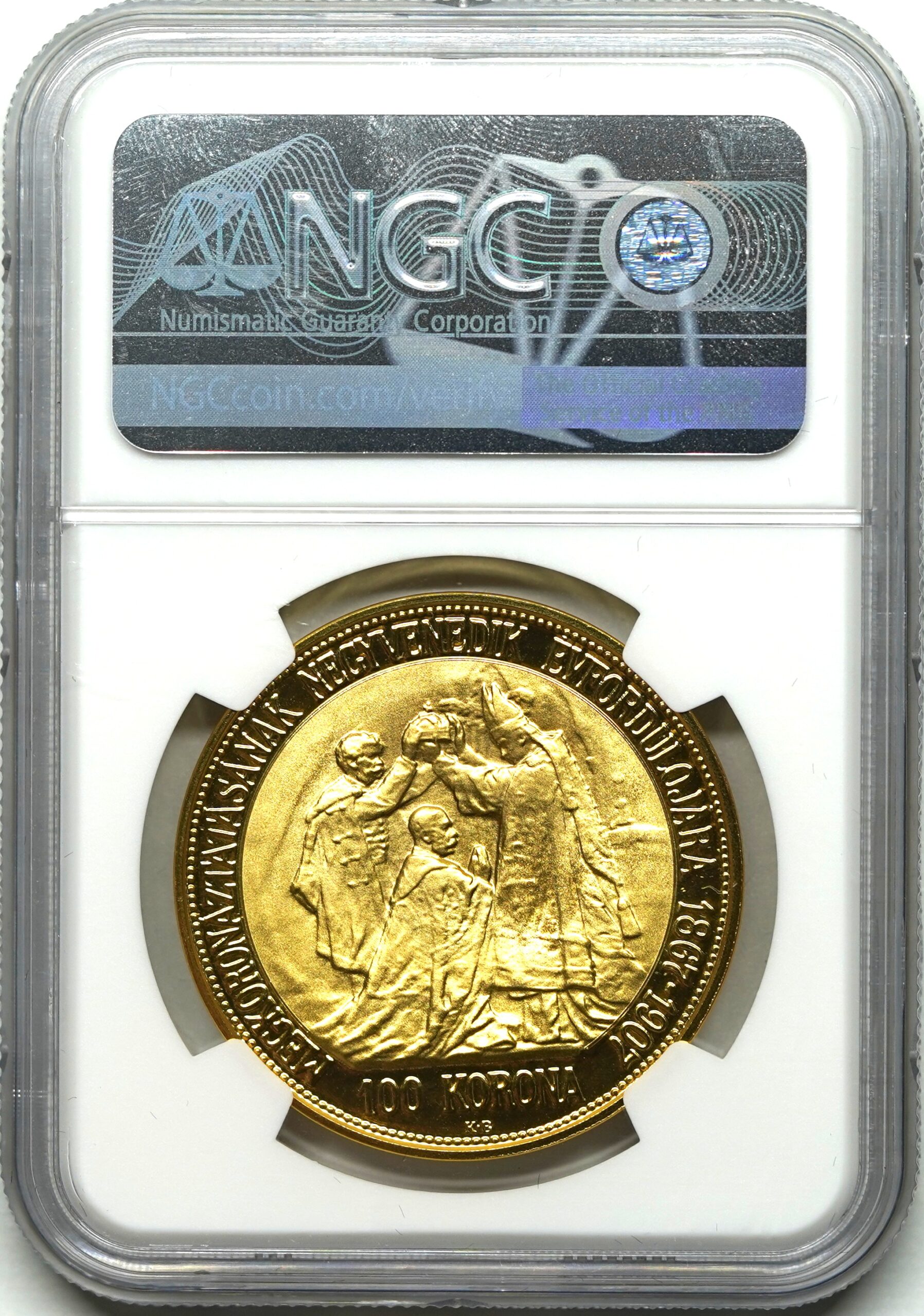 【Sold】1907年 フランツ・ヨーゼフ1世 戴冠40年記念 100コロナ金貨 リストライク PF70UCAM NGC