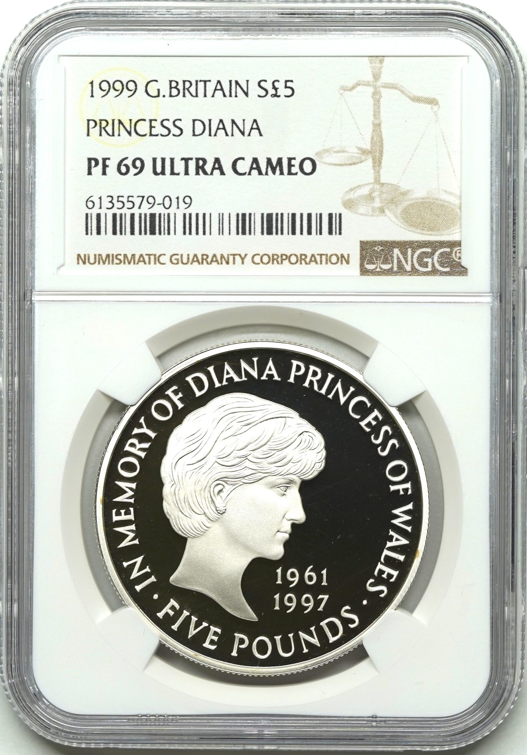 1999年 ダイアナ 5ポンド銀貨 PF69UCAM NGC