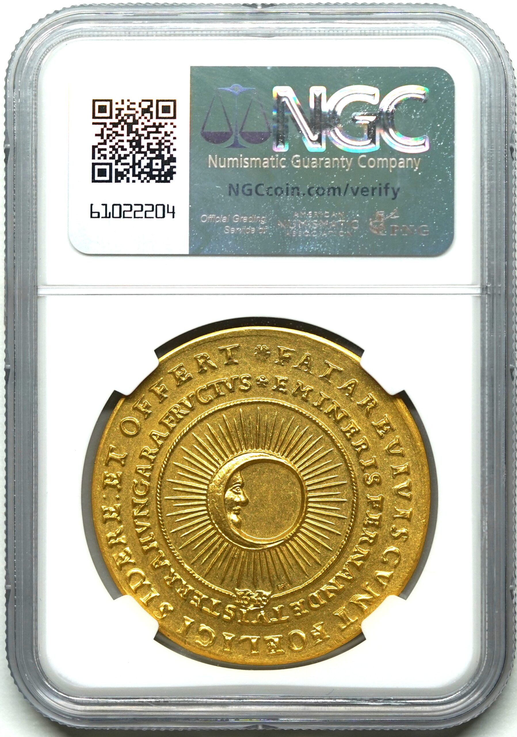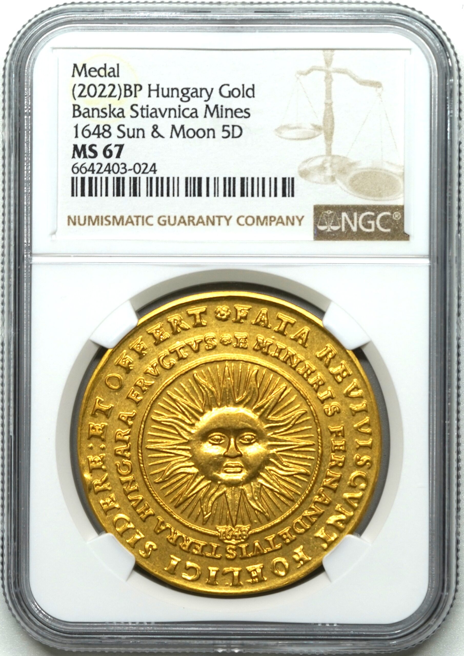 【Sold】【ハンガリー博物館監修、発行枚数30枚】1648年(2022年) ハンガリー フェルディナンド3世 Sun and Moon 5ダカット リストライク MS67 NGC