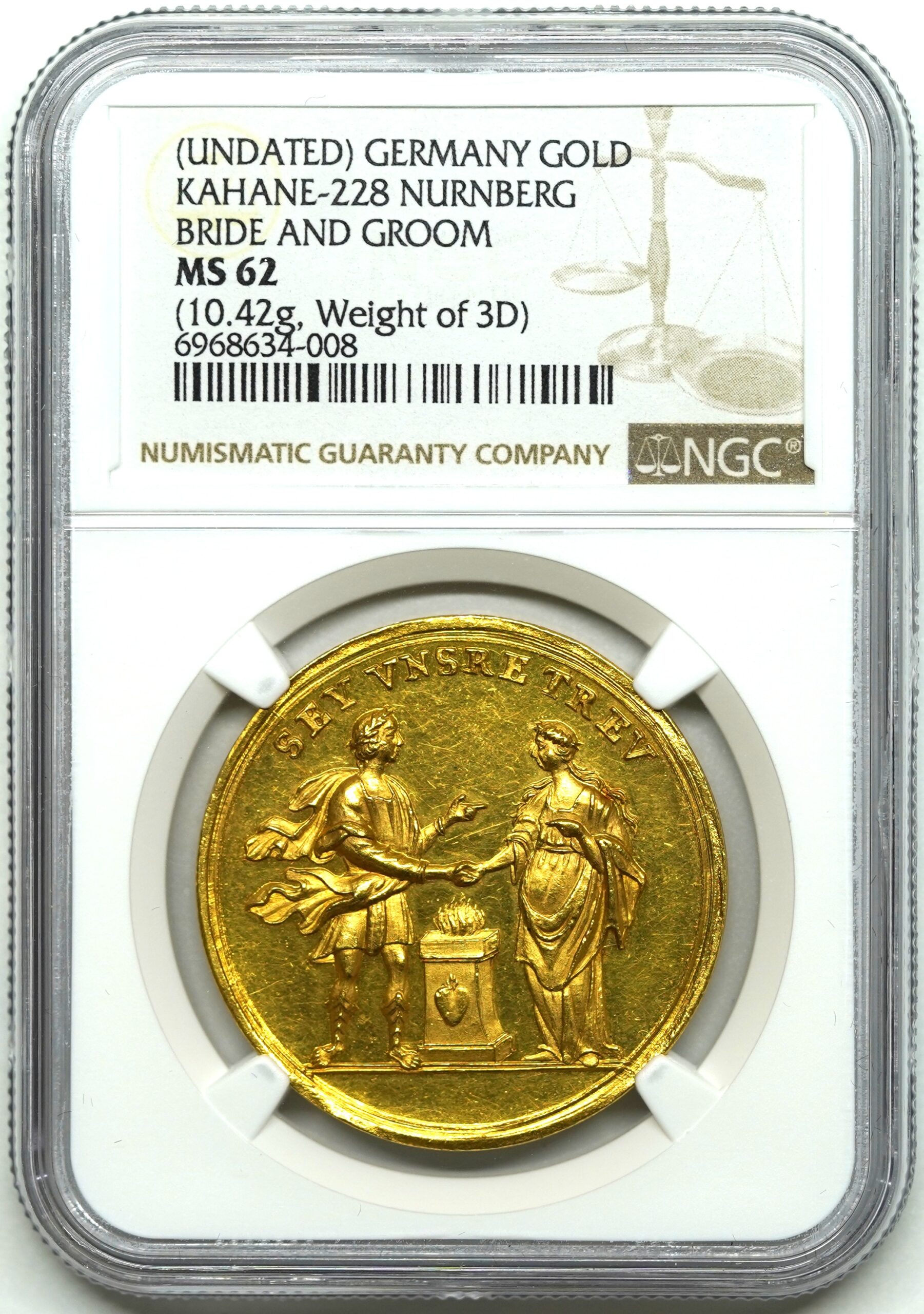 神聖ローマ帝国 1700年 レオポルト1世 新郎新婦 3ダカット 金メダル MS62 NGC