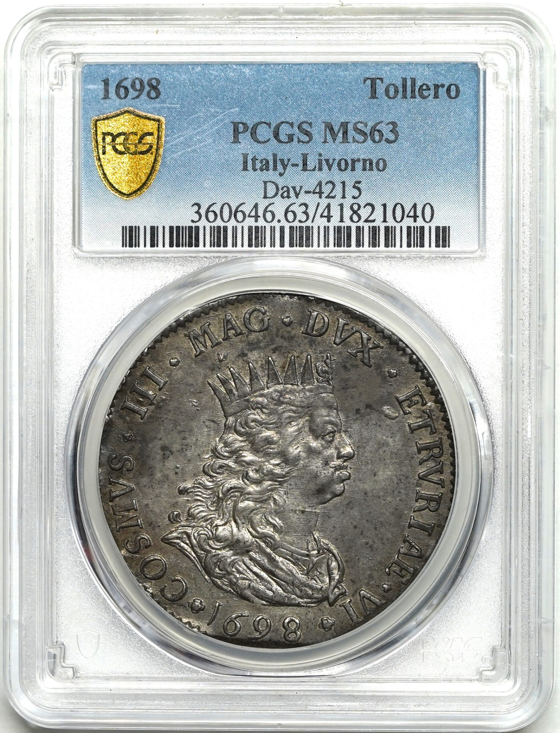 【髙橋残念!!】1698年 トスカーナ大公 コジモ3世 リヴォルノ港景観 Tollero銀貨 MS63 PCGS