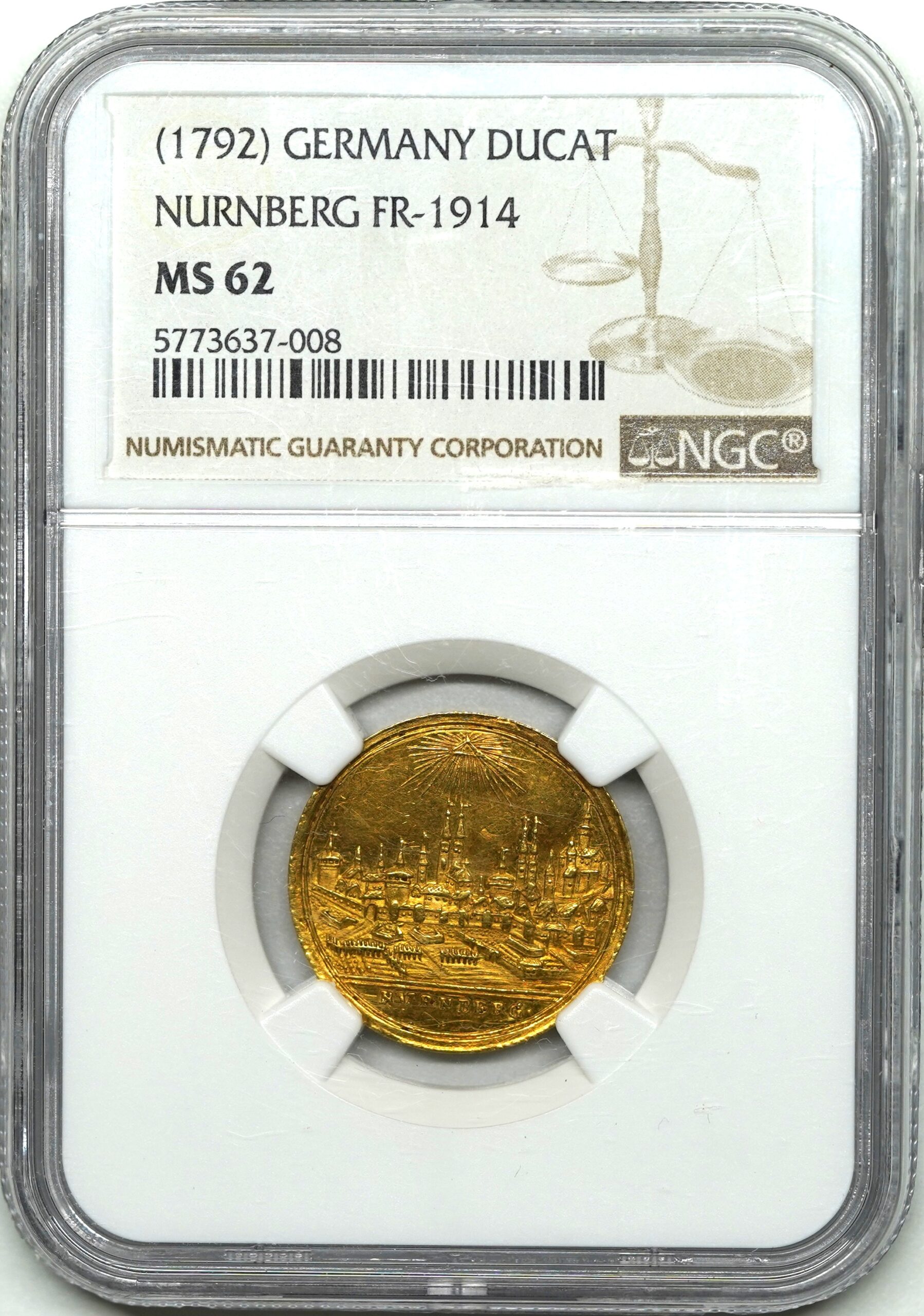 【神聖ローマ帝国】1792年 フランツ1世 ニュルンベルク 都市景観 ダカット金貨 MS62 NGC
