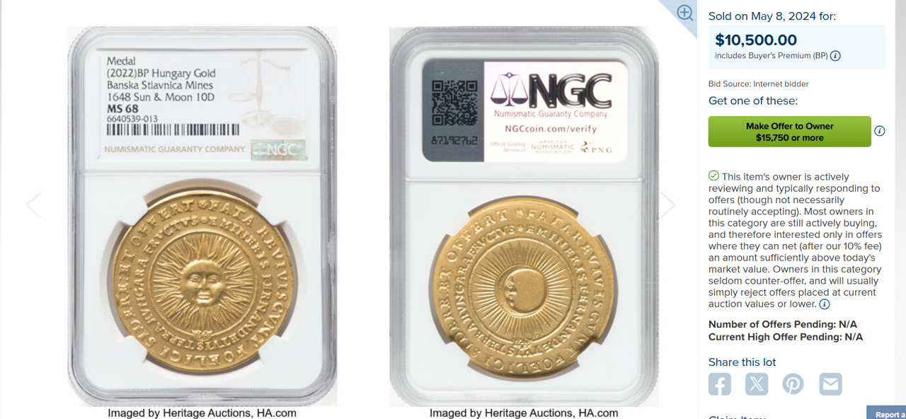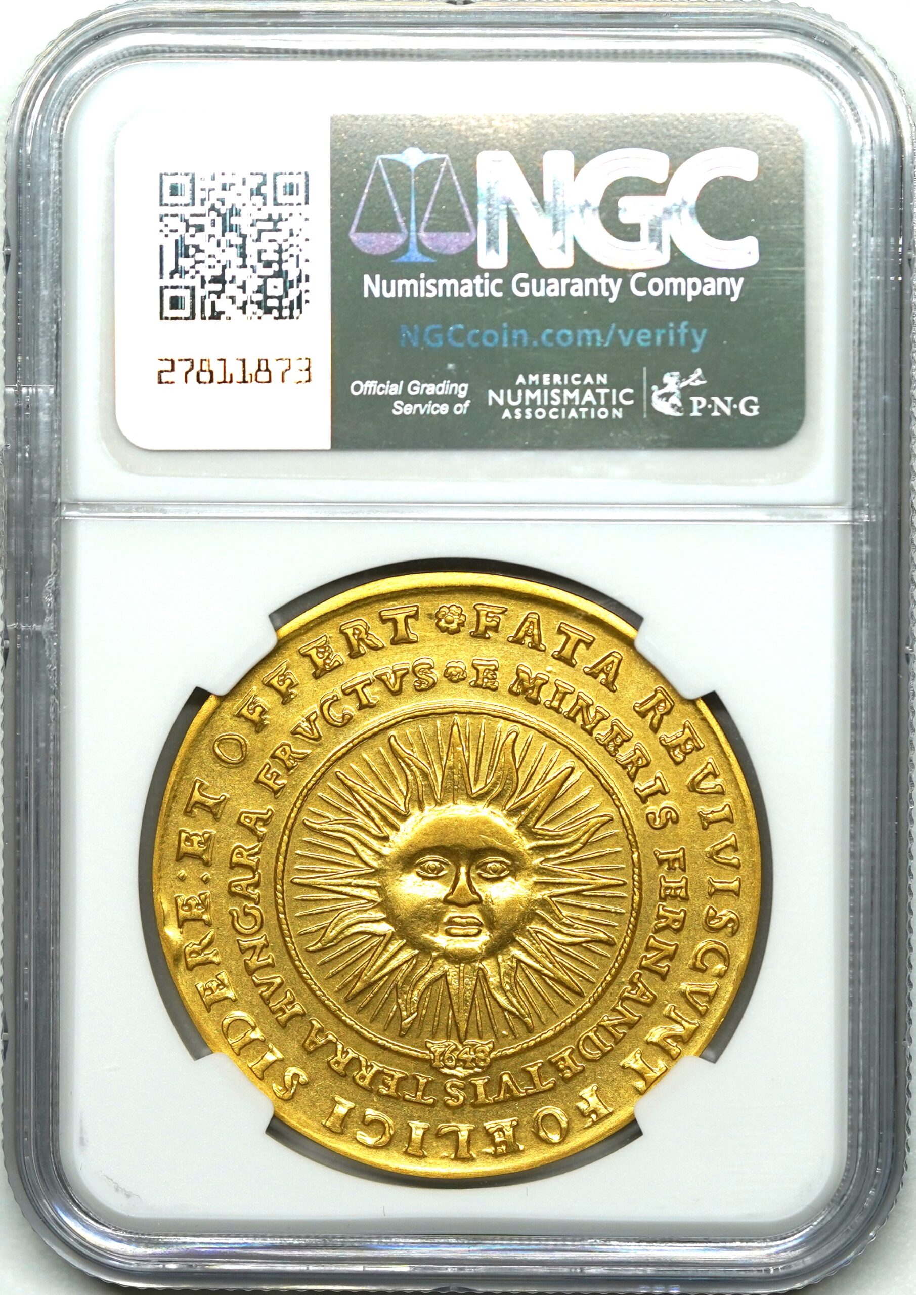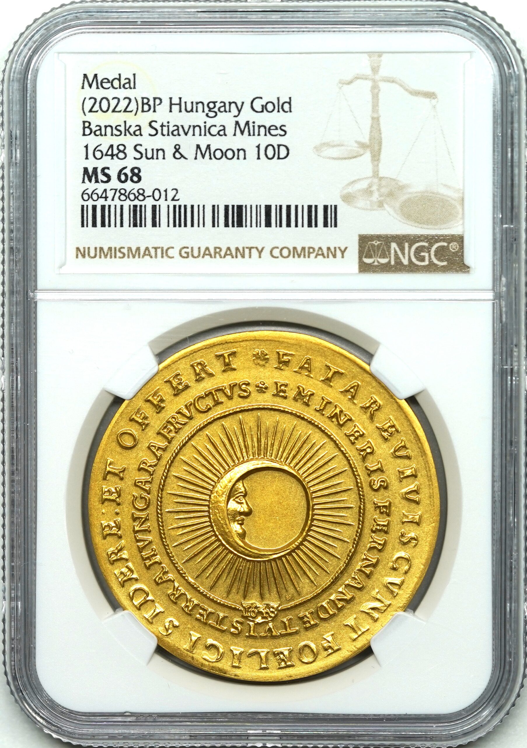 【Sold】【ハンガリー博物館監修】1648年(2022年) ハンガリー フェルディナンド3世 Sun and Moon 10ダカット リストライク MS68 NGC