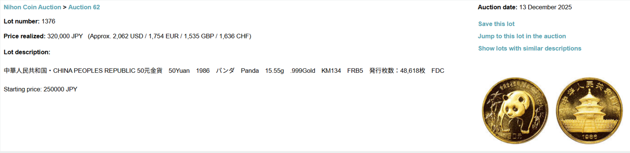 日本でも、徐々に人気が出てきているパンダ金貨となります。