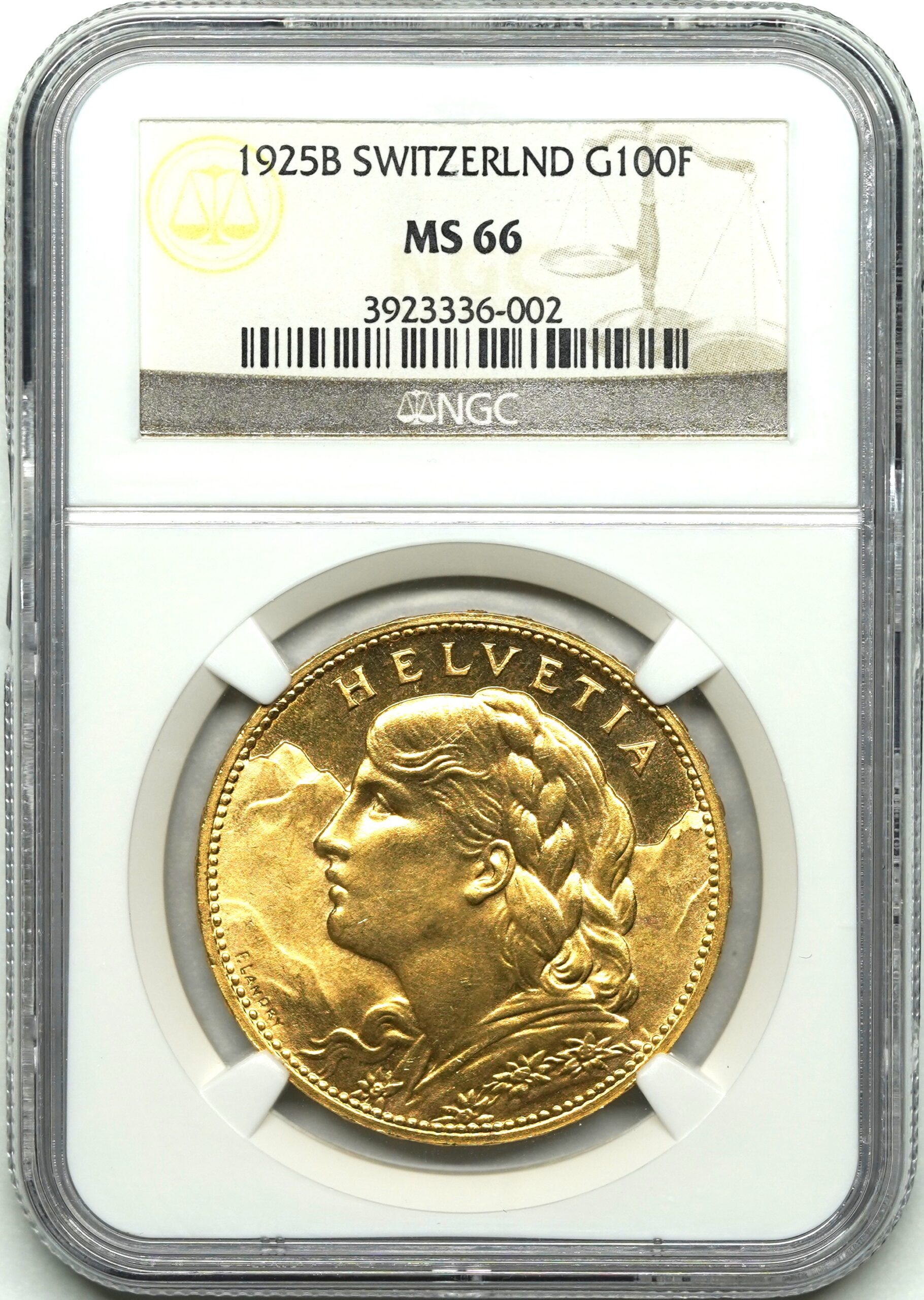 【Sold】1925年 アルプスの少女 100フラン金貨 MS66 NGC