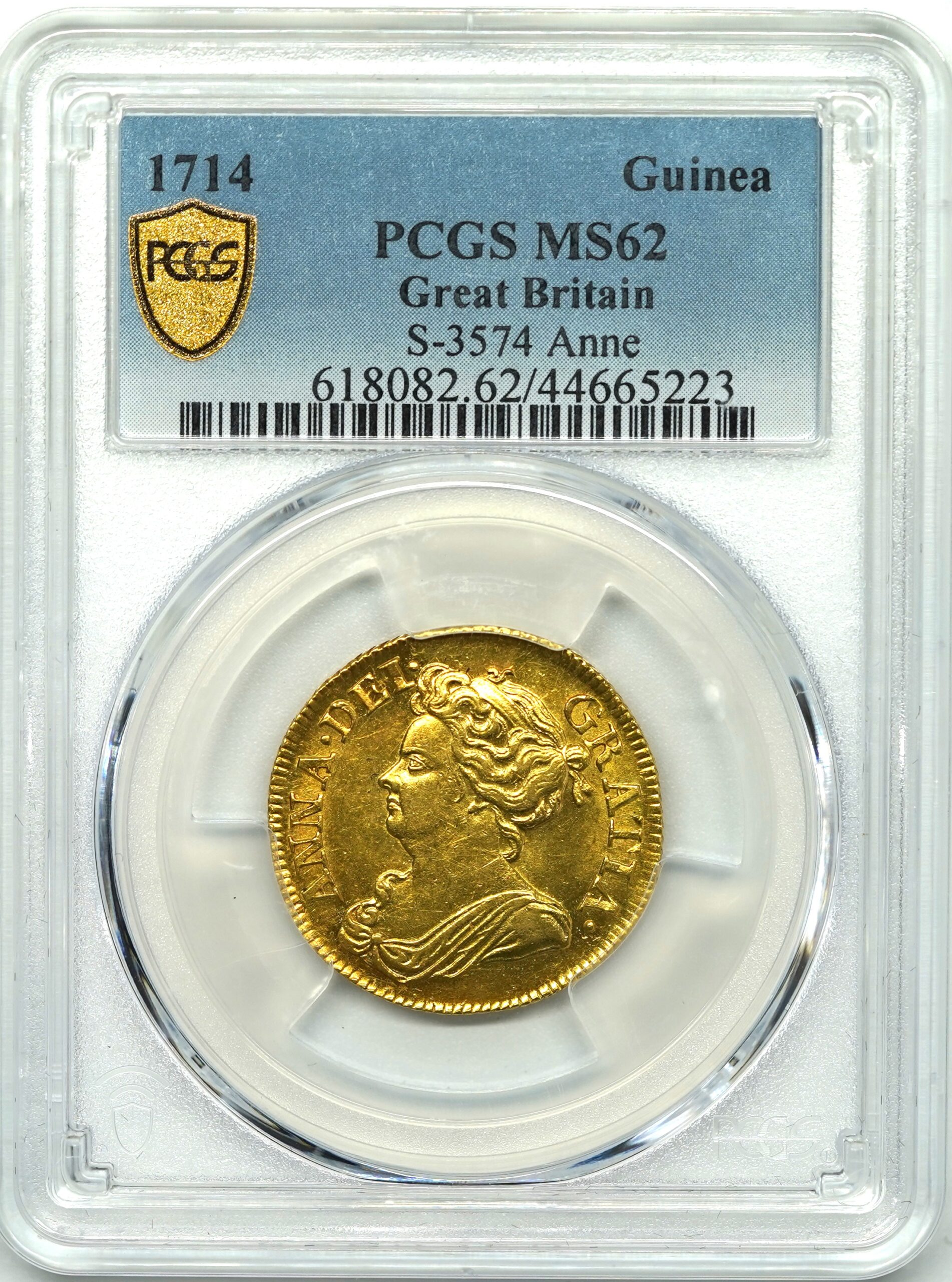 1714年 アン女王 ギニー金貨 MS62 PCGS
