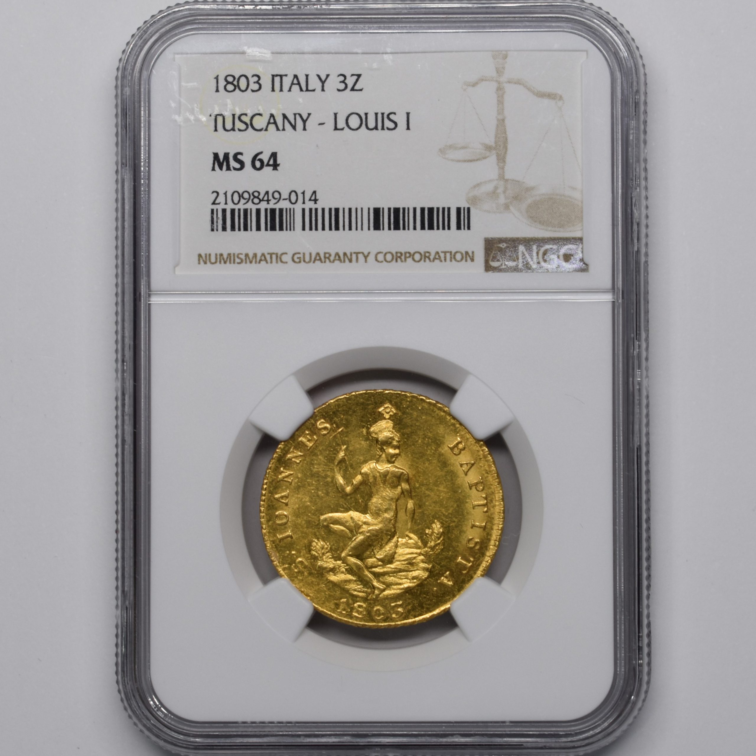 【Sold】1803年 トスカーナ ルドヴィーゴ1世 3ズッチーニ金貨 MS64 NGC